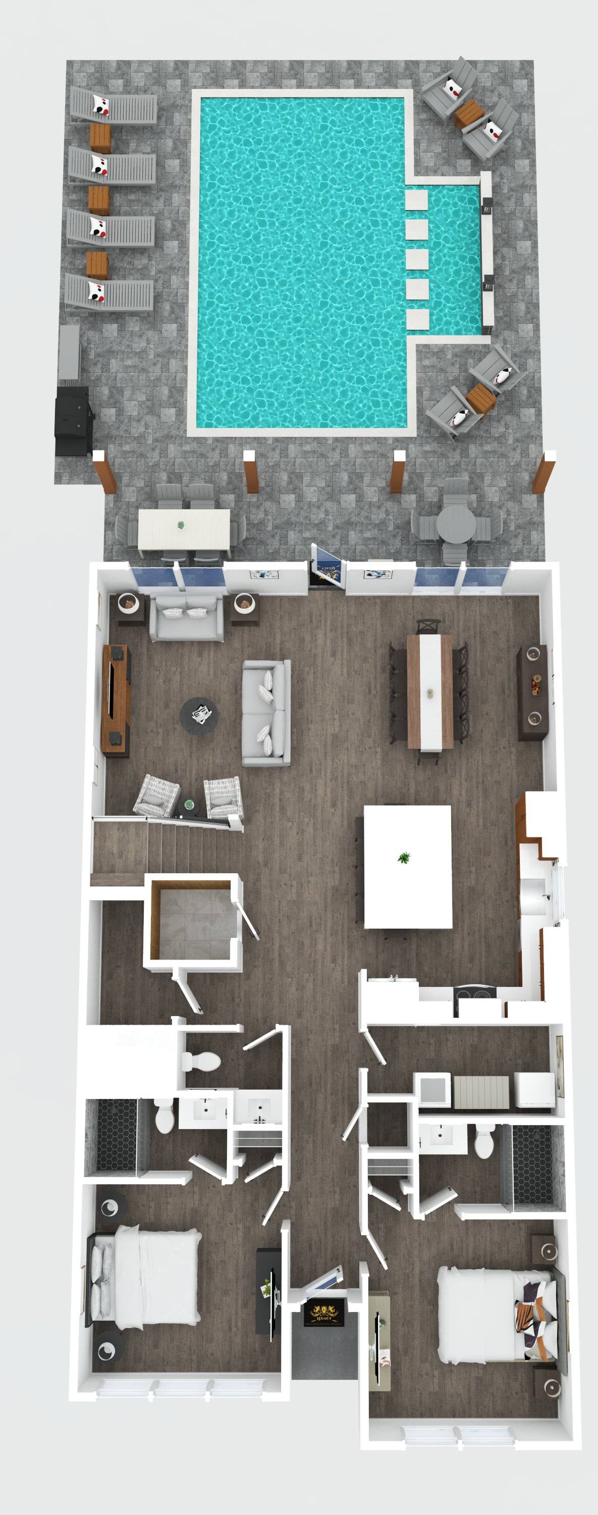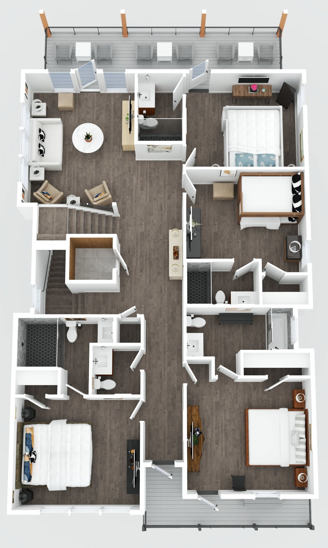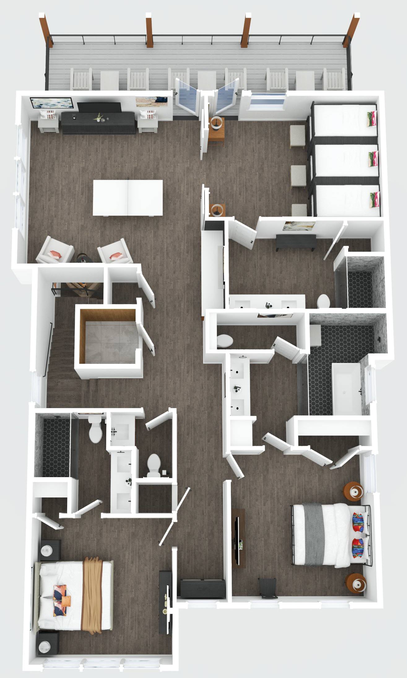 | Bedroom 3 | King over King bunk with attached private bath | 4 |