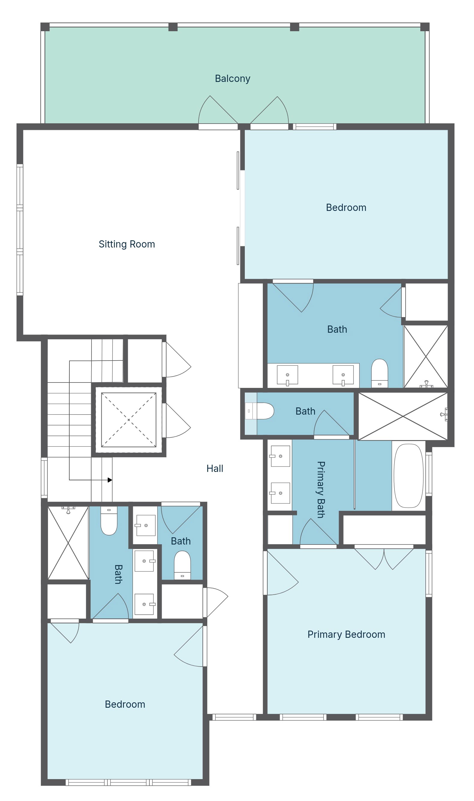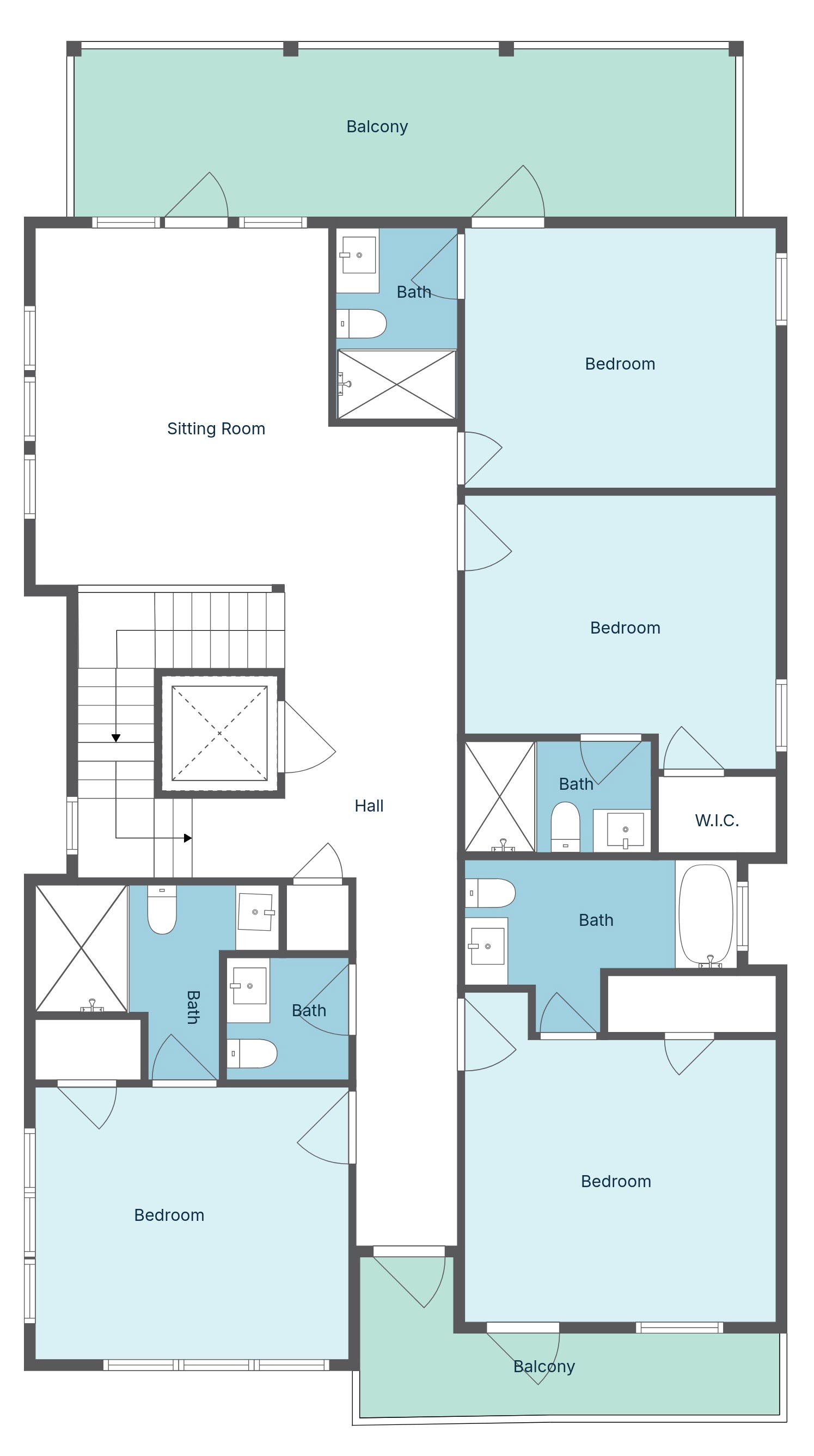 | Bedroom 5 | King with attached private bath and balcony access | 2 |